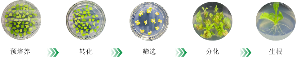 可转化品种:K326、红花烟草、本氏烟、烤烟品种等烟草品种,客户亦可自提供其他品种种子进行转化。若品种特殊,转化周期将对应延长。